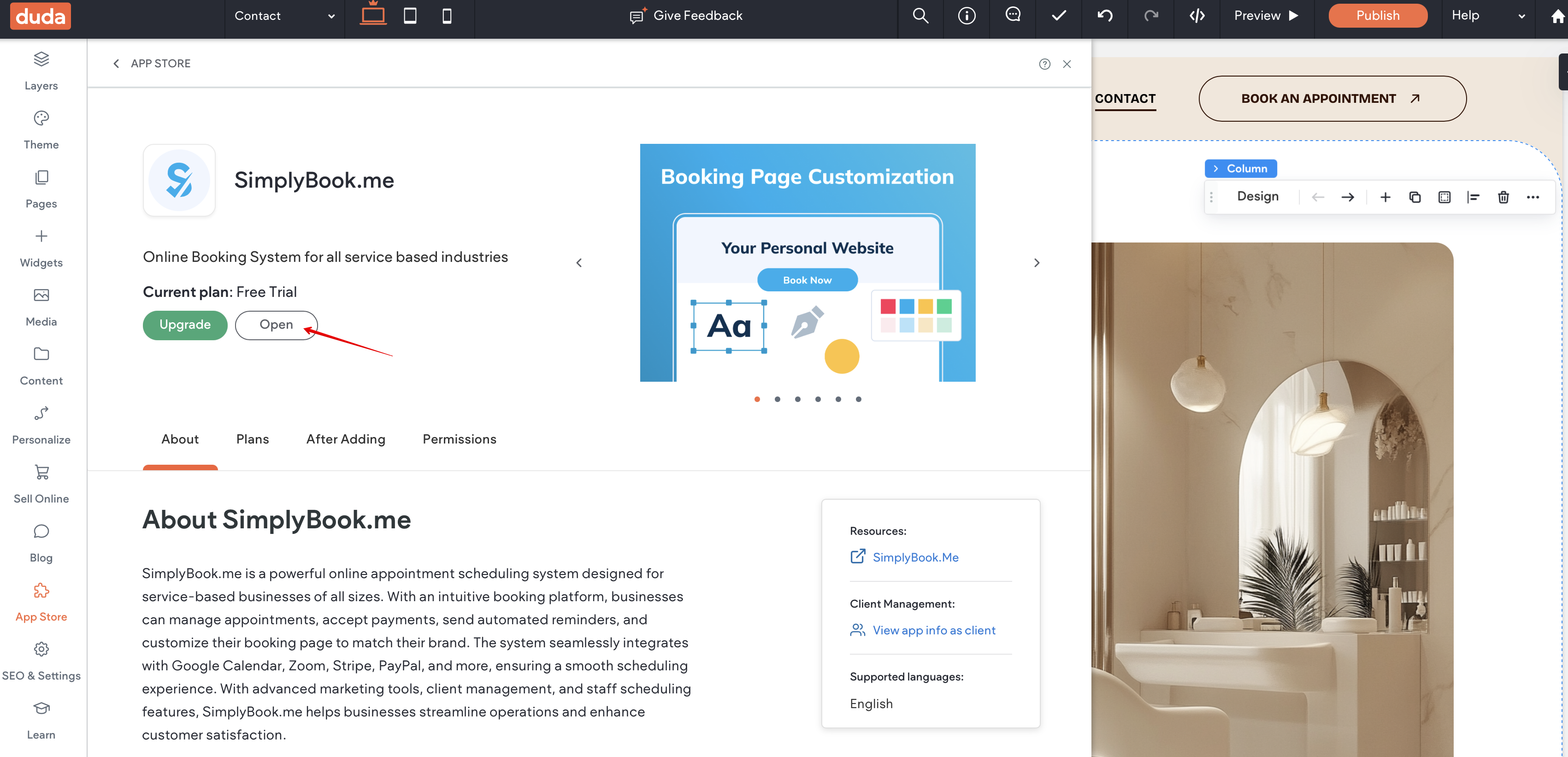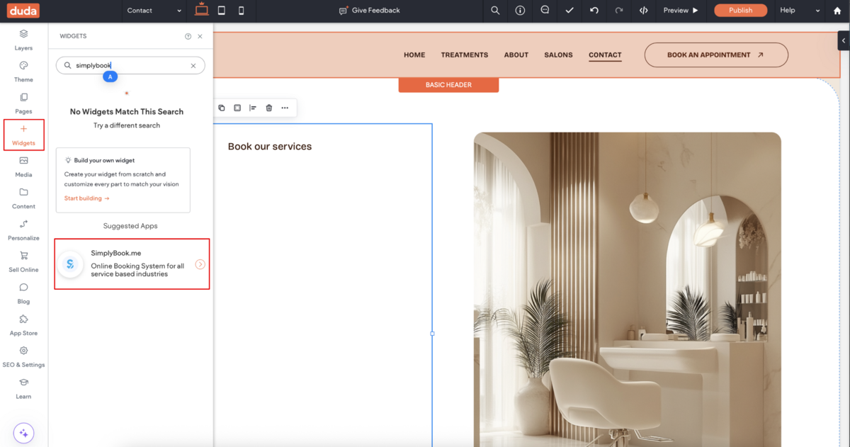 If you're building your website on Duda and want to offer a sleek, professional appointment booking experience, SimplyBook.me is the perfect solution. With just a few simple steps, you can embed your booking widget directly into your Duda site. All services, pricing, availability, and settings are managed in your SimplyBook.me admin, while the widget is fully customizable to match your website’s look and feel. Let’s get started!